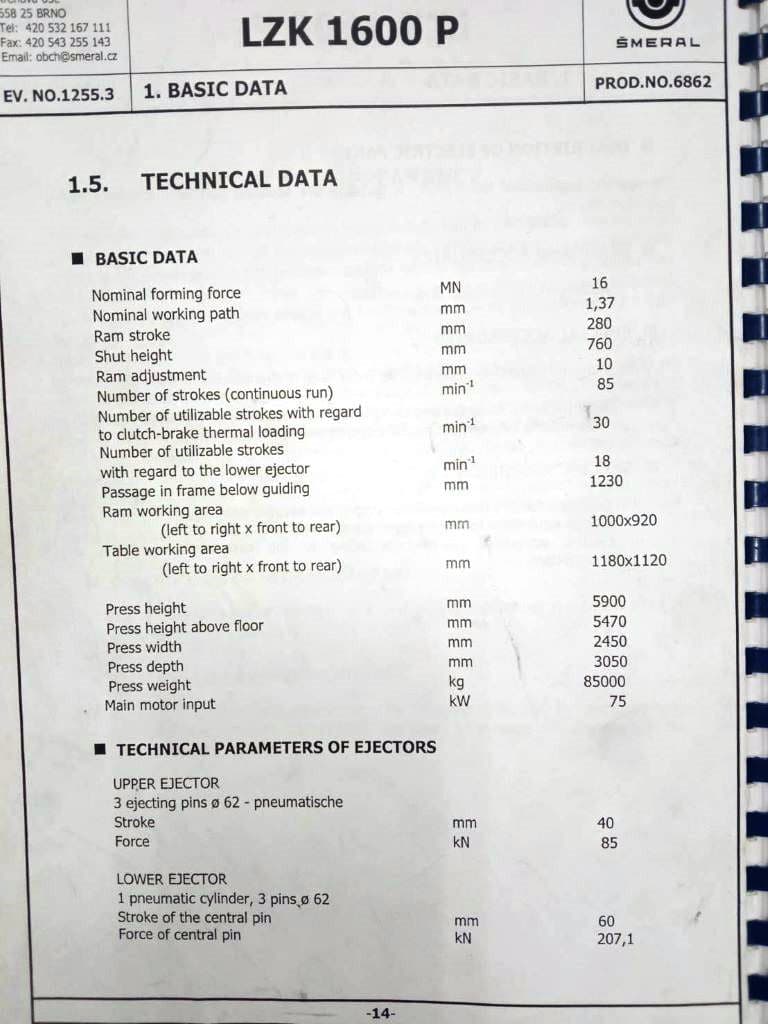 | Nominal force | 1600 ton |