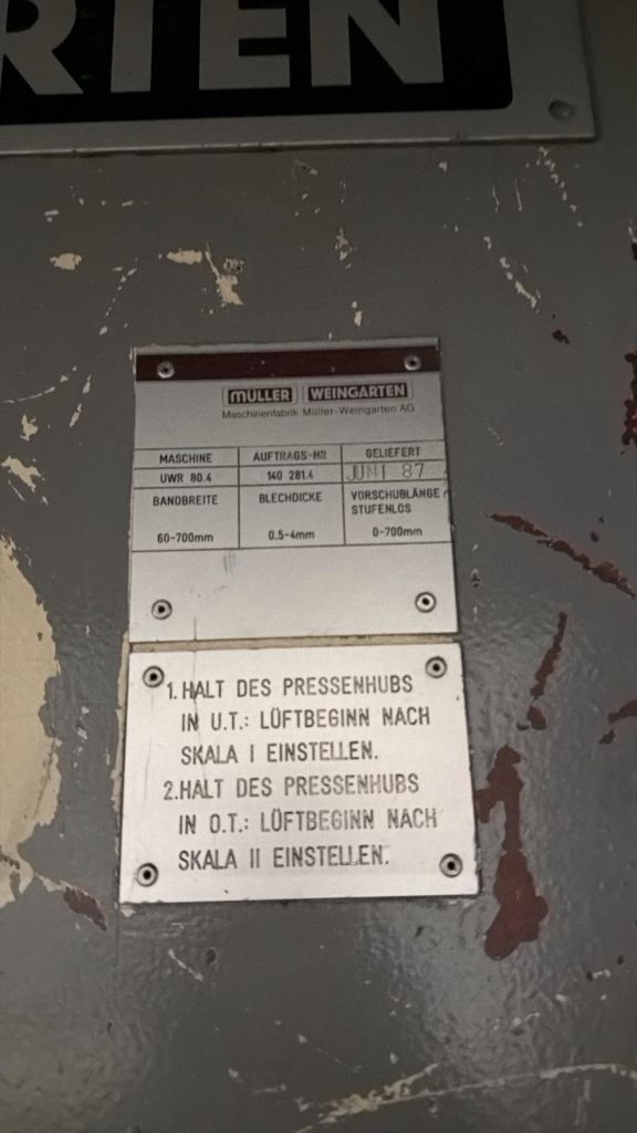 Technische Daten (EN) - Abwickler-Richtmaschine Muller Weingarten UWR 80 (ID: 76429)