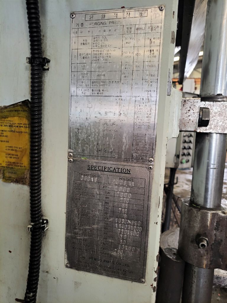 Kommerzielles Angebot (Verkauf) - Schmiedepresse Jaewoo JFP-2000 - 2000 ton (ID:76358). Alle Details zu diesem Angebot (Kosten, Zahlungsbedingungen und Lieferbedingungen) erhalten Sie von unserem Manager, indem Sie auf die Schaltfläche klicken "Anfrage senden" . Wir können auch bei der Suche nach anderen Geräten Ausrüstung.Anfrage senden